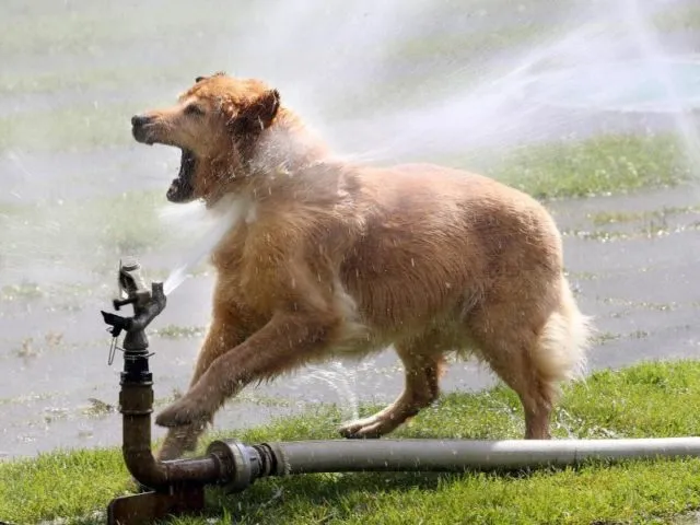 Hundstage: Bei Temperaturen um 29 Grad Celsius erfrischt sich ein Hund im Berliner Tiergarten.