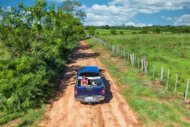 Unterwegs auf einer der typischen roten Sandstraßen in Paraguay.