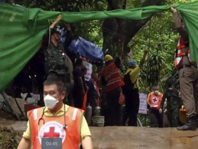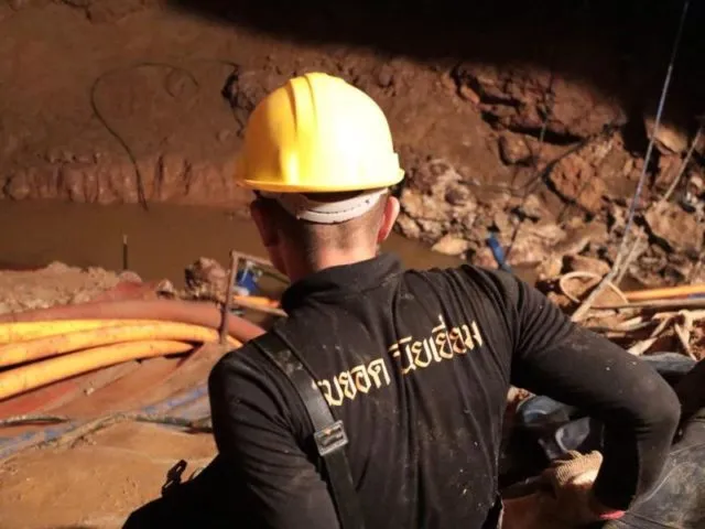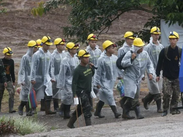 Rettungskräfte sind auf dem Weg zur Höhle, in der sich noch Mitglieder der Jugend-Fußball-Mannschaft befinden.