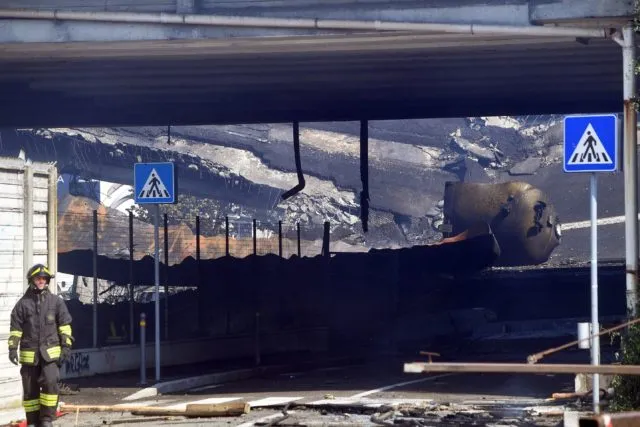 Am Montag ereignete sich auf einer Autobahn-Tangente in Bologna eine Serie von Explosionen, als ein Tankwagen auf einen Reihe stehender Lkws auffuhr und in Flammen aufging. Bei dem Unfall starb der 42-jährige Fahrer des Tanklasters.