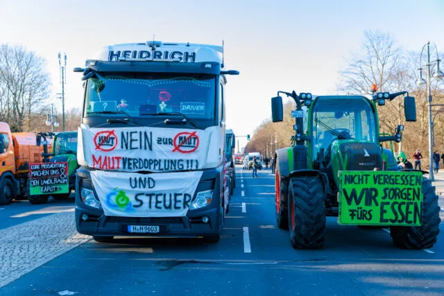 Spediteure protestieren gemeinsam mit Bauern.