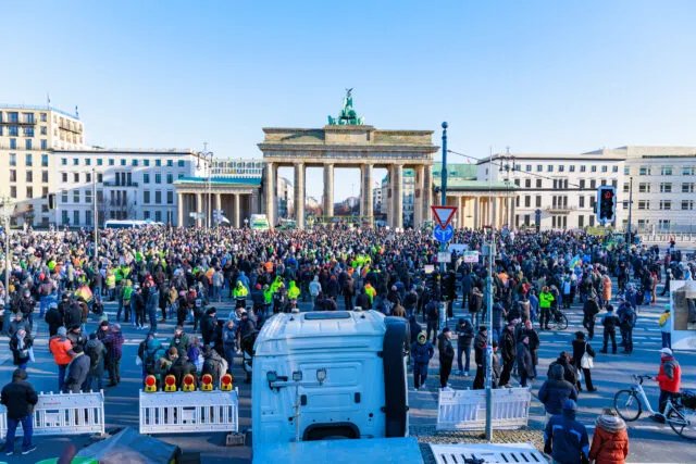 Zum Auftakt der Protestwoche der Bauern fand vor dem Brandenburger Tor in Berlin eine Veranstaltung der Freien Bauern statt. Doch nicht nur Bauern fuhren mit Treckern vor, sondern auch Speditionsunternehmer, Baufirmen und Handwerker, die die Aktion unterstützten. Mit Schildern machten sie darauf aufmerksam, wo ihrer Meinung nach die Probleme liegen.