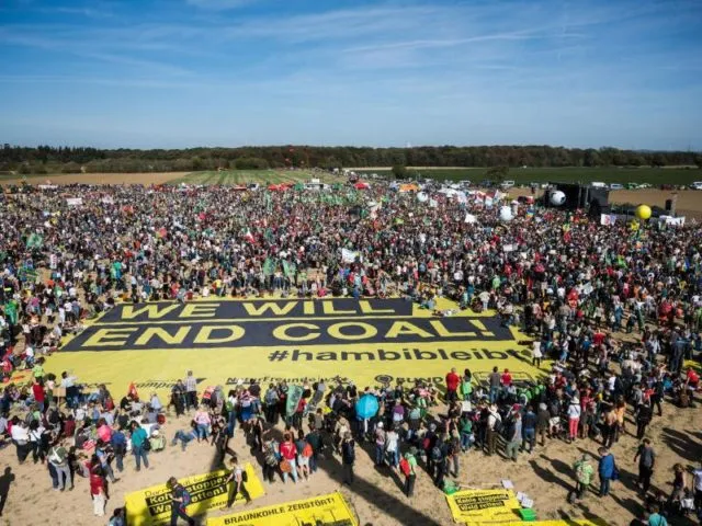 Im Tagebau Hambach arbeiten Bergbaumaschinen. Der angrenzende Hambacher Forst gilt als Symbol des Widerstands gegen die Kohle.
