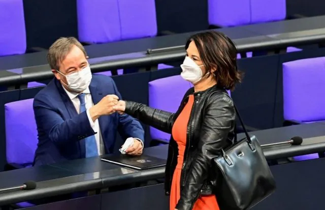 Grünen-Politikerin Annalena Baerbock in Lederjacke im Bundestag am 24. Juni 2021.
