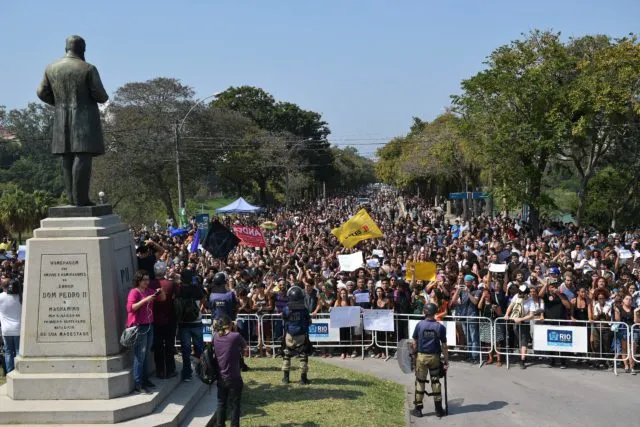 Vor dem National Museum protestieren aufgebrachte Menschen gegen die Urheber der Katastrophe.