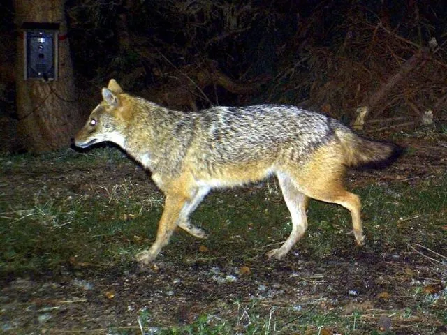 Das Foto aus dem Jahr 2012 zeigt einen Goldschakal, der im Nationalpark Bayerischer Wald von einer Wildkamera fotografiert wurde.