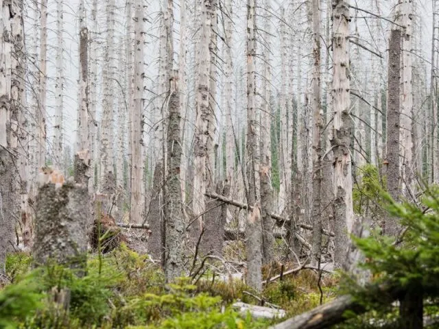 Blick in einen von Borkenkäfern befallenen Nadelwald zwischen Torfhaus und Braunlage im Nationalpark Harz.