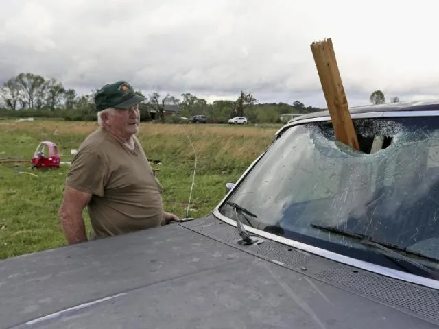 Glück gehabt: Dieser Autobesitzer glaubt seinen Augen nicht. Auch hier in Hamilton in Mississippi wurden Dutzende Häuser dem Erdboden gleichgemacht.