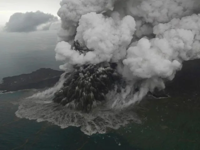 Blick auf den Vulkan Anak Krakatau in der Sunda-Meerenge.